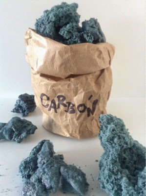 Ahora hacemos un almíbar en un cazo poniendo el agua y el azúcar y llevamos a ebullición hasta que alcance 126º ( midiendo con el termómetro de cocina) Cuando el almíbar alcance la temperatura, unos 5 minutos desde que llega a ebullición, añadimos el merengue negro al cazo y removemos bien. La mezcla empezará a subir formando una espuma, seguimos removiendo, volverá a bajar y en el momento que vaya a subir de nuevo, volcamos rápidamente en la caja o molde que preparamos al principio. Aunque parece que se nos va a desbordar se quedará frío enseguida y ya tendremos nuestro carbón, que cuando enfríe del todo partiremos haciendo trozos irregulares.